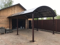 Арочный автонавес с поликарбонатом пристрой к гаражу