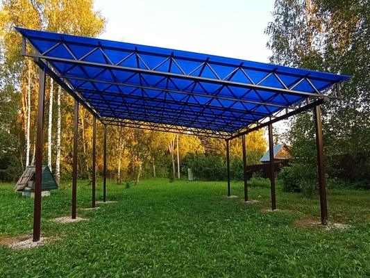 Навес из поликарбоната с ковкой односкатный для машин рядом с домом